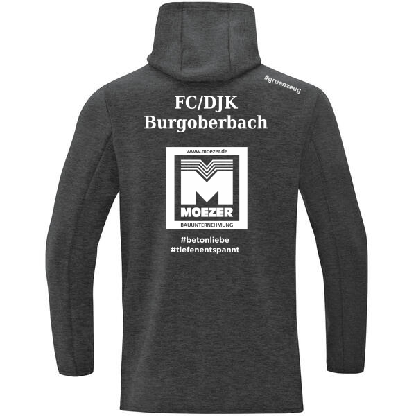 Sport und Freizeit sind im Leben vieler Menschen immer enger miteinander verbunden. Deshalb schickt JAKO dich ab sofort in den hochwertigen PREMIUM Basics zum Sport und in den Alltag. Die Kapuzenjacke der Linie ist sportlich geschnitten und im modernen Melange - Look gestaltet. Das ist typisch für die PREMIUM Basics. Diese Mischung aus zwei Farben erinnert mit ihrer Struktur an den Asphalt, auf dem sich das Leben in den Großstädten abspielt. Im Nackenbereich dieser Jacke ist eine lässige Kapuze angebracht, die dein Outfit abrunden oder bei Bedarf über den Kopf gezogen werden kann. Dank des Reißverschlusses auf der Vorderseite kann die Kapuzenjacke bequem an- und ausgezogen werden. Sie ist in sechs Farbvarianten erhältlich und aus dem funktionalen Material Double - Tech - Knit gestaltet. Dieses passt sich den Konturen deines Körpers an und betont deine sportliche Figur. Die Ausstattung eignet sich auch als Begleiter für Teams, die passende Veredelung vorausgesetzt. Der Kapuzenpulli ist in den Größen S - 4XL für Herren und Kinder sowie im taillierten Damenschnitt in 34 - 44 verfügbar.