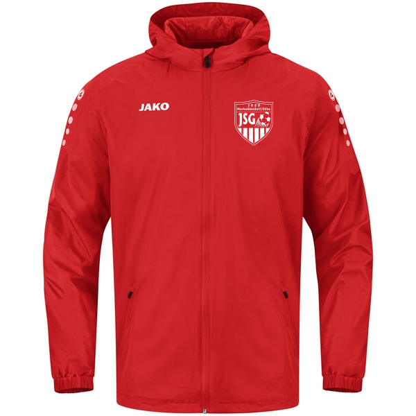 Die JAKO Allwetterjacke Team 2.0 besteht aus 100 % Polyester. Ein hochfunktionelles, wasserabweisendes Obermaterial mit PU-Beschichtung hält dich bei jedem Wetter trocken. Die Kapuze, der verlängerte Rücken und die elastische Binding schützen dich vor Wind und Regen. In den integrierten Seitentaschen mit Reißverschluss kannst Du deine Wertsachen verstauen.