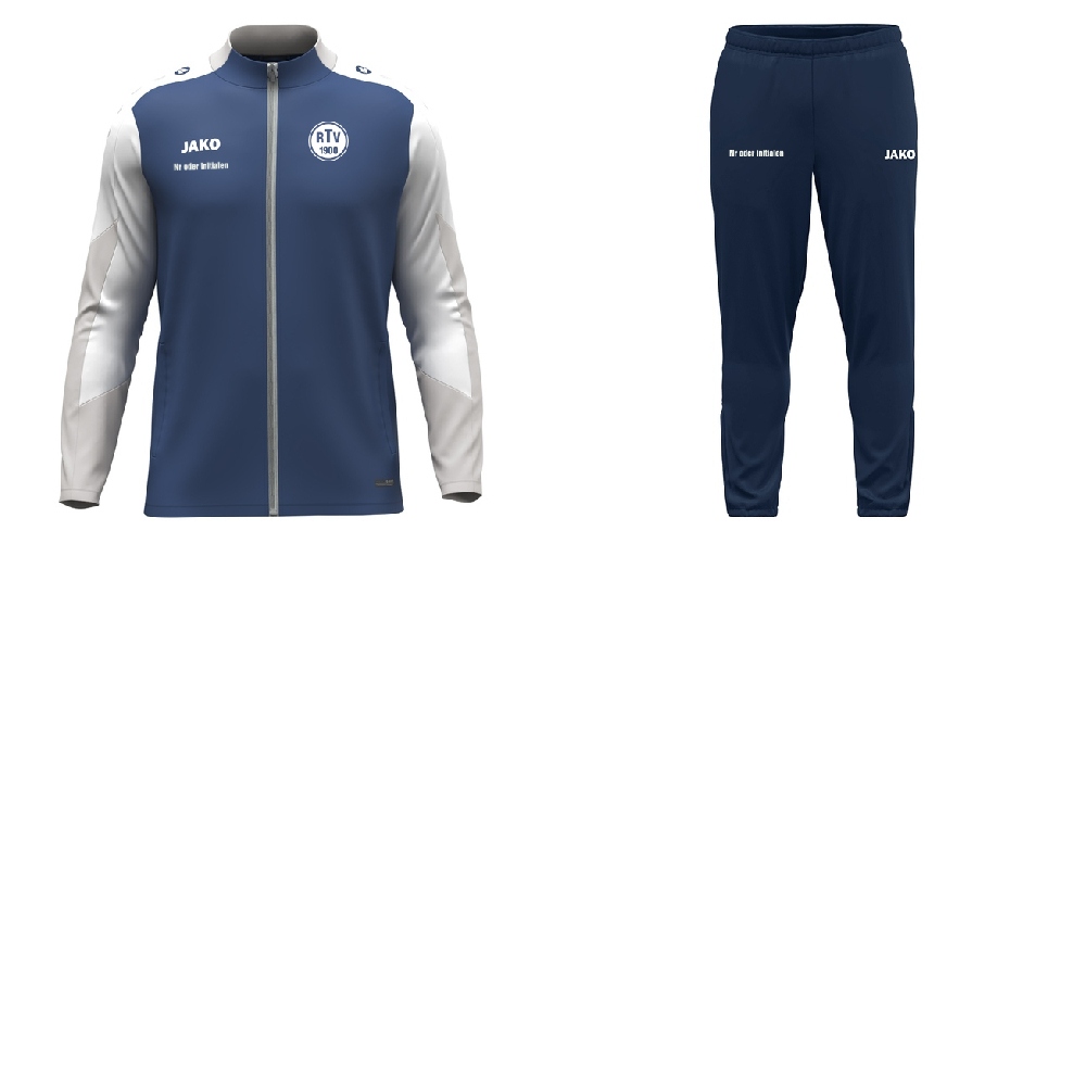 Der offizielle RTV-Polyesteranzug: Kombi Polyesterjacke plus Polyesterhose Dynamic zum Vorteilspreis! Ideal für Jugendliche & Erwachsene. Hinweis: Kinderpreis € 43,75 gilt nur, wenn Jacke & Hose beide als Kindergröße (sonst Seniorpreis € 49,75).